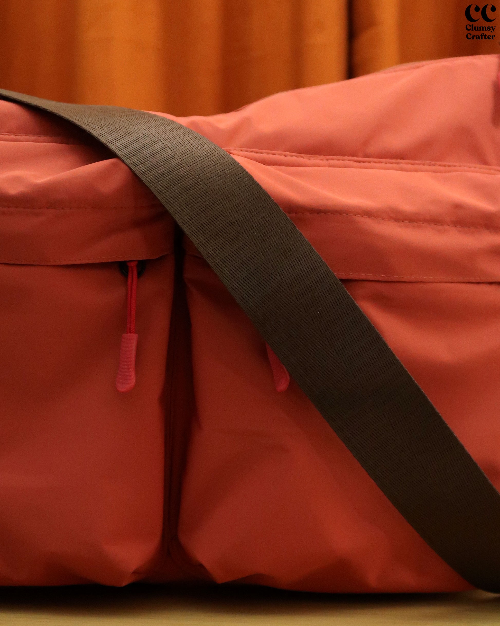 The shoulder strap is also polyester, adding to its lightweight comfort.